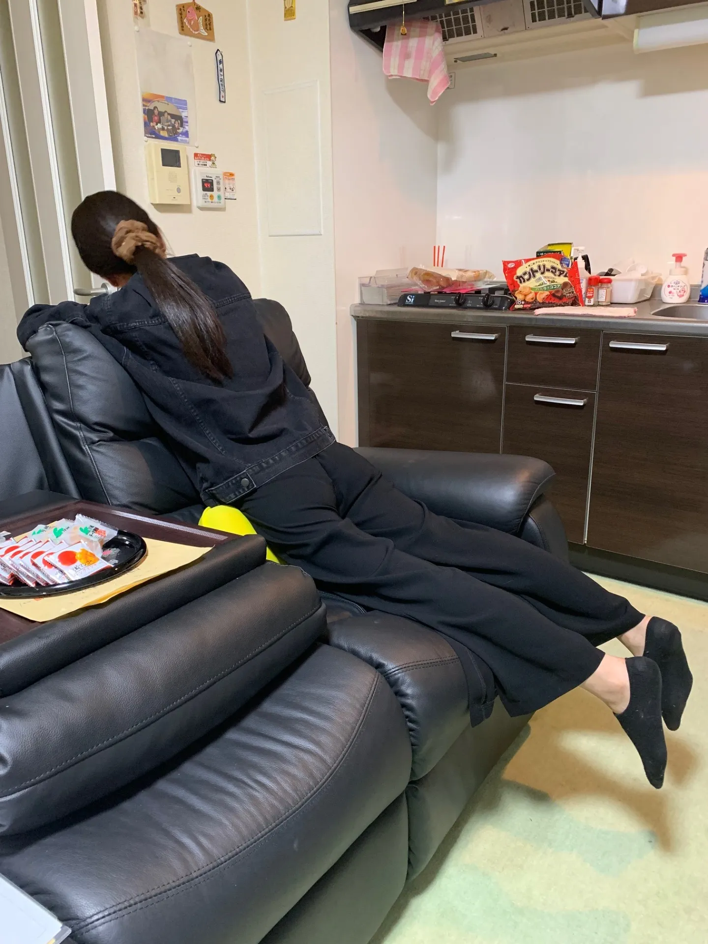 「腰が痛くなったから伸ばす」と言って、背筋を伸ばしている場面ですね。