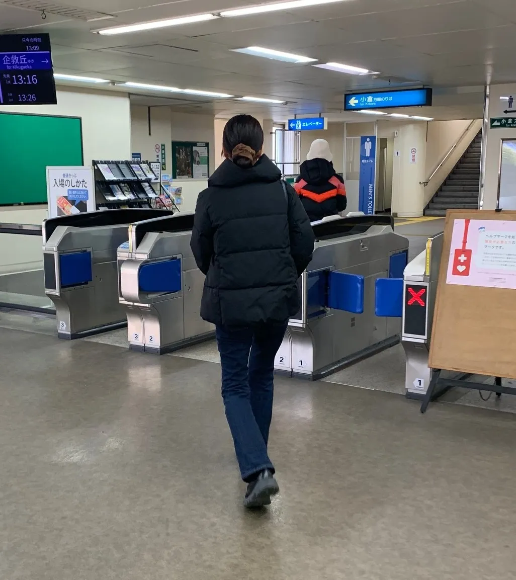 下写真は、対象者等のホテル入りを撮影した直後の探偵スタッフ「ユイさん」になります。
