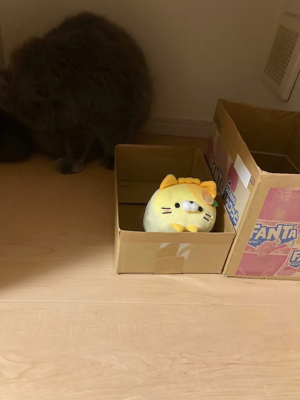 夜は段ボールのところで寝てしまうようです。