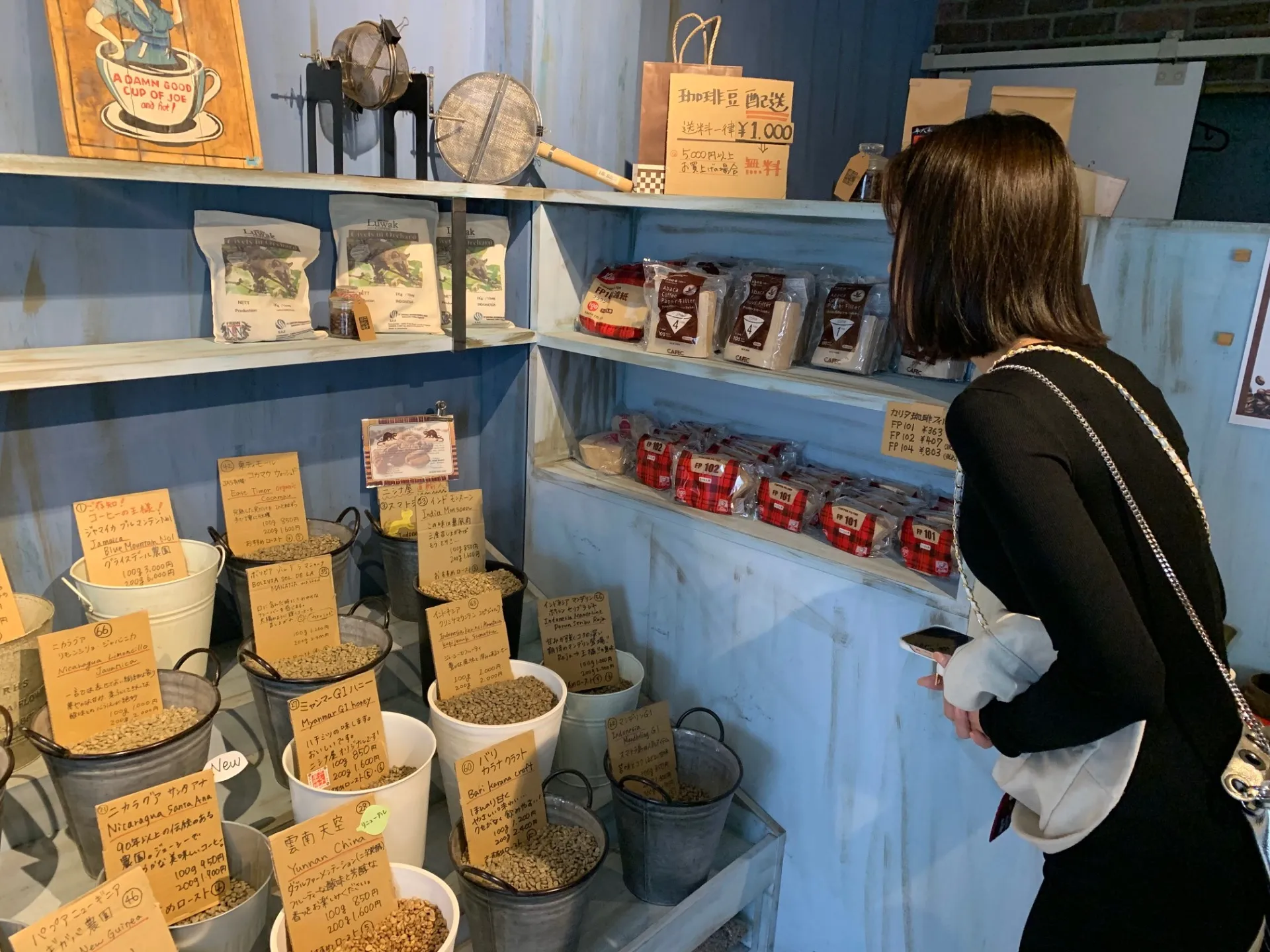 トップ写真はコーヒー豆を買いに行っているケイさんですね。