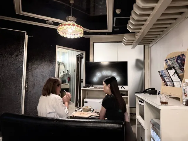 翌日の浮気調査初回編についての打ち合わせをしております。