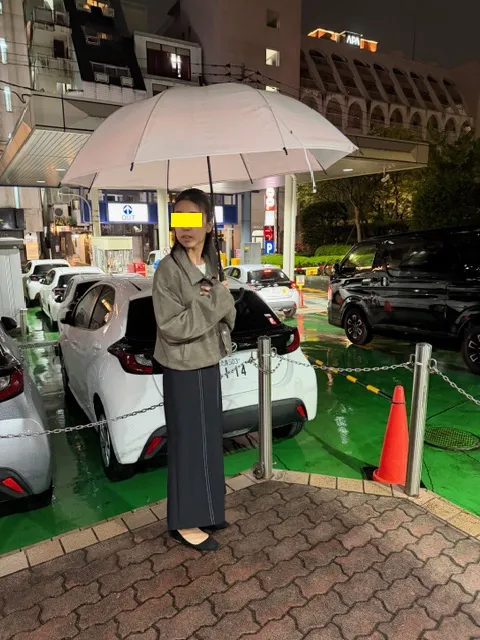 結構雨が強かったですので、調査車両内の置き傘を使用しましてお店へゴーです。