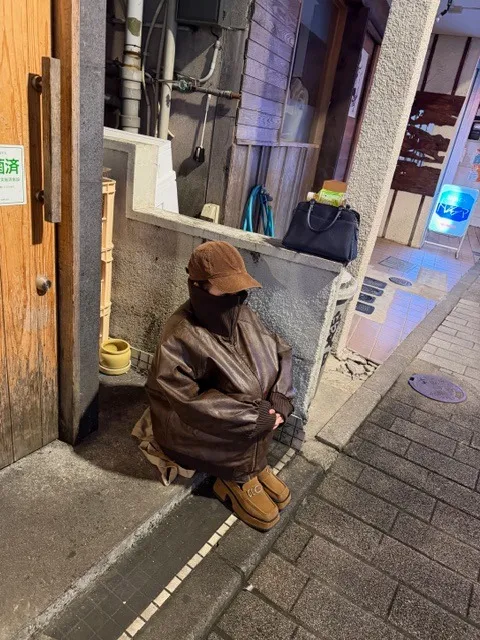 浮浪者か酔っ払いにしか見えないよ。でも目立つから声をかけられそうだな」と