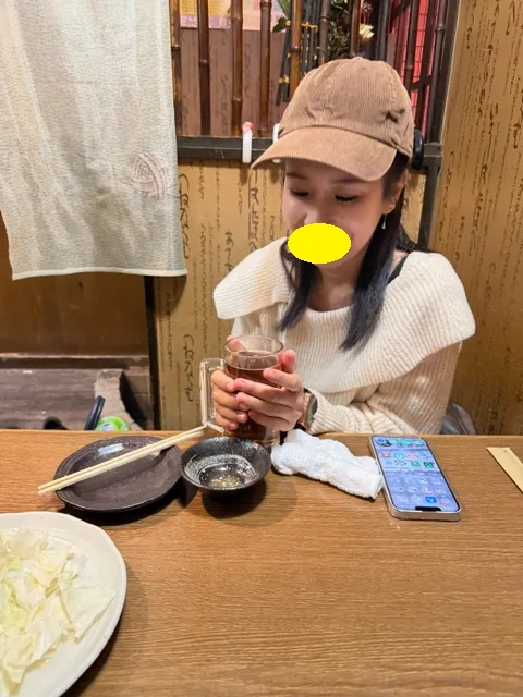 下写真は調査終了後に飛び込みましたお店で倒れ込みながら・・・・というユイさんですね。