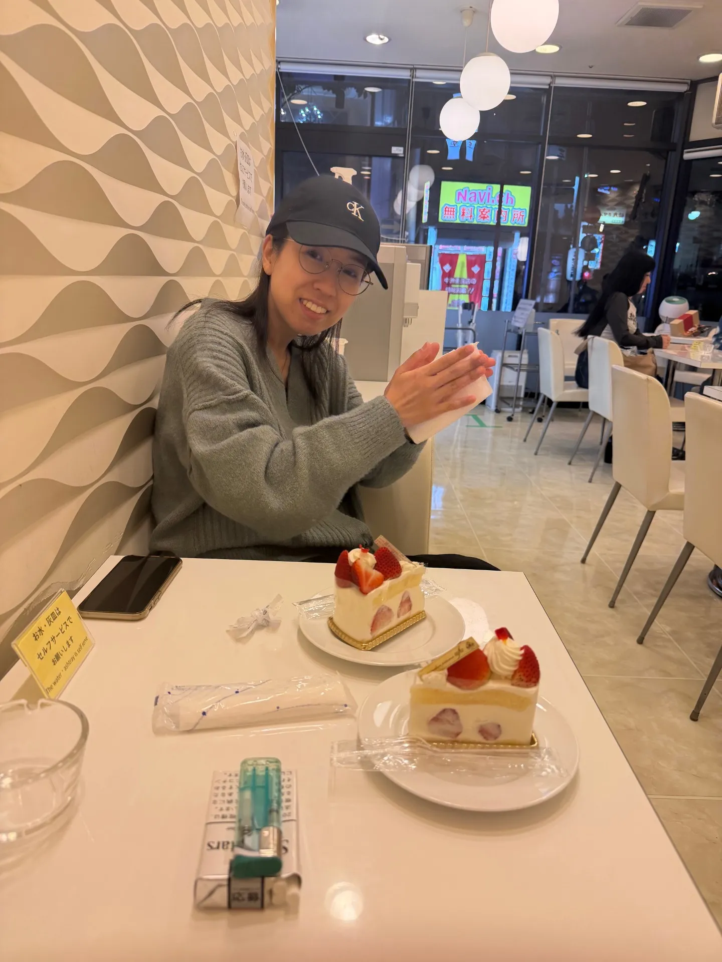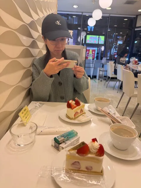撮影行為は継続しながら、我々はケーキで一休みしております。