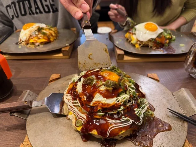 普通は卵を崩しながら、お好み焼きに浸透させる形で食べると思うのですが