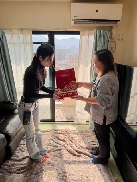 下写真はプレゼントをもらって喜んでいるケイさんになります。