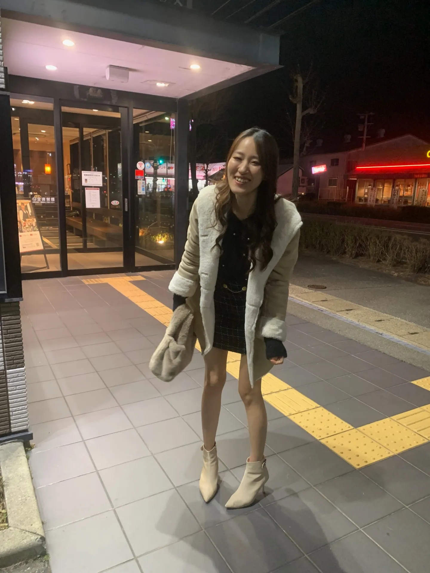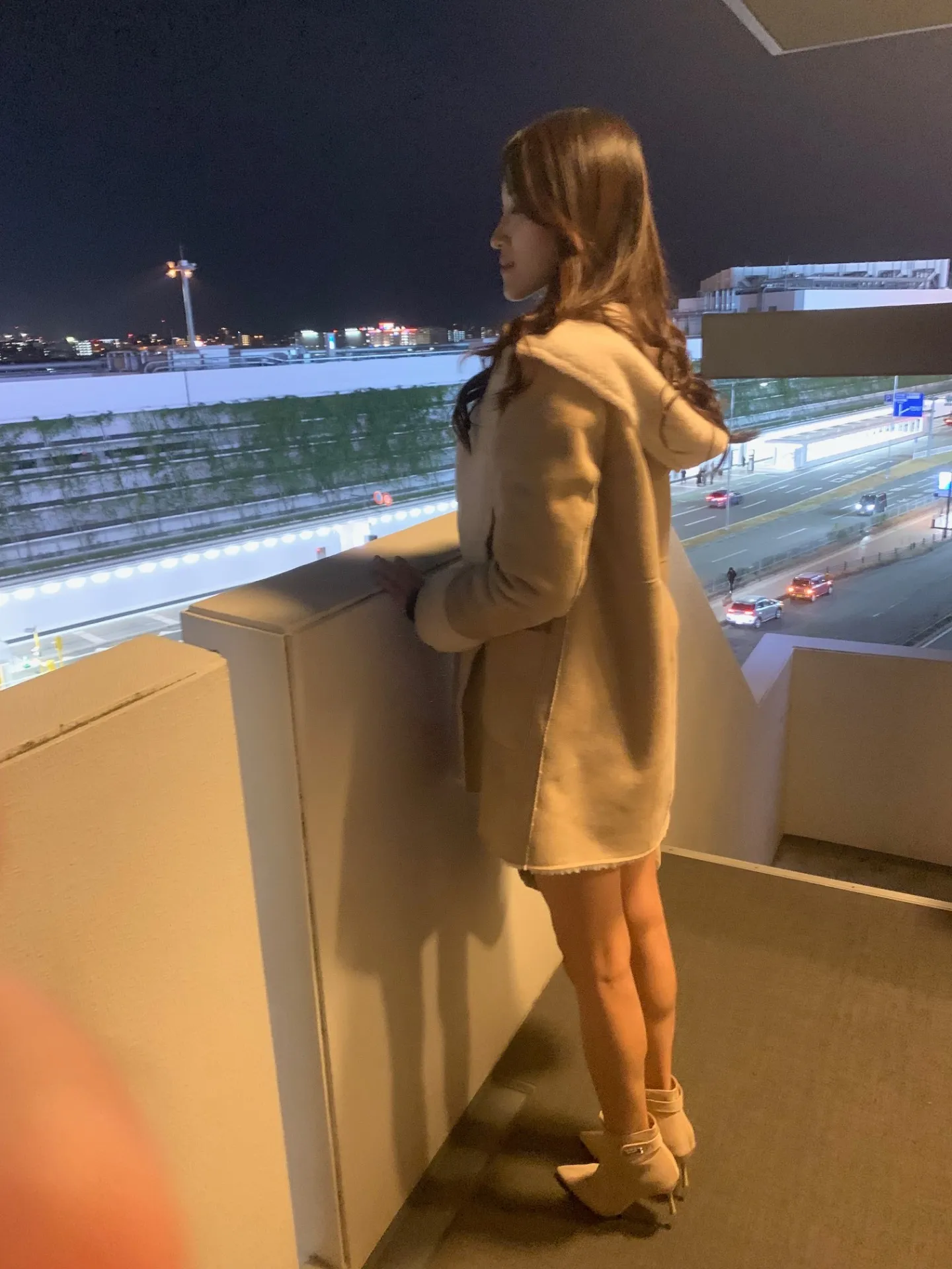 現在、夜景を楽しみながら、夜の発着場面を見ていますね。