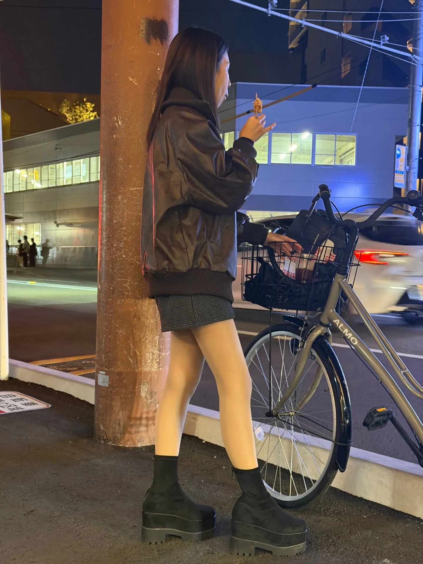 写真は、実際の調査時、どうしても服装を考えないといけない潜入直前の彼女です。