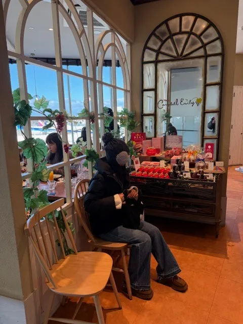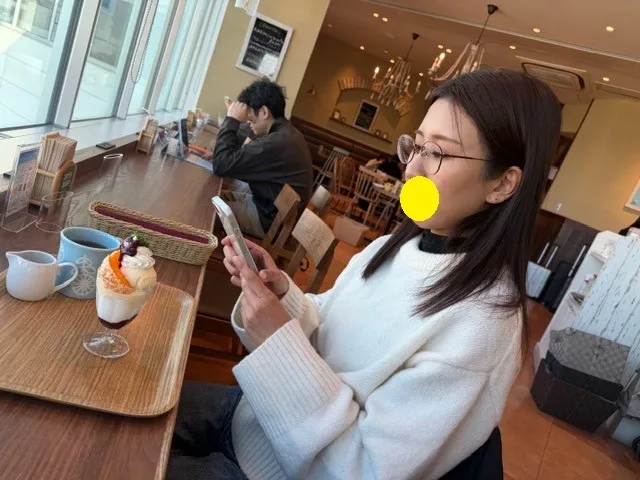 パンケーキは自分がもらいまして、ユイさんは小さなパフェを食べております。