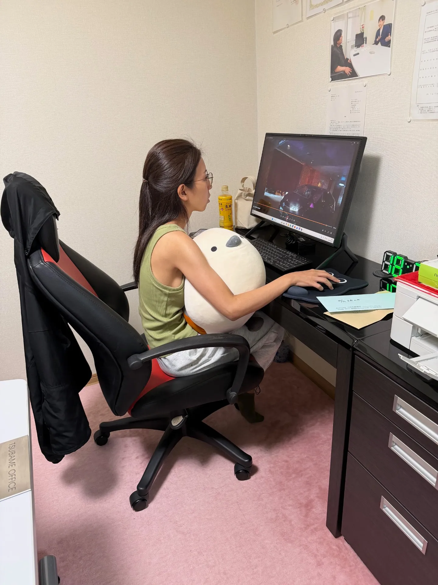 ユイさんには、事務所作業を頼みました。