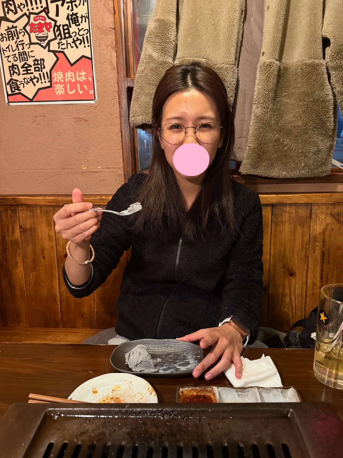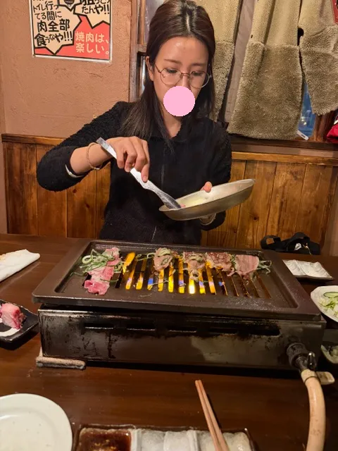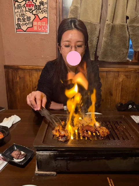 なんで大衆焼き肉店で横座りをして、くっつかないといけないのか・・・・