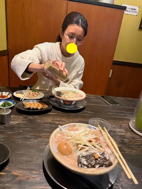 ラーメン屋さんでは、上写真の卵の横にあります「豚脂の揚げ玉を入れないの?前は入れていたよね?」
