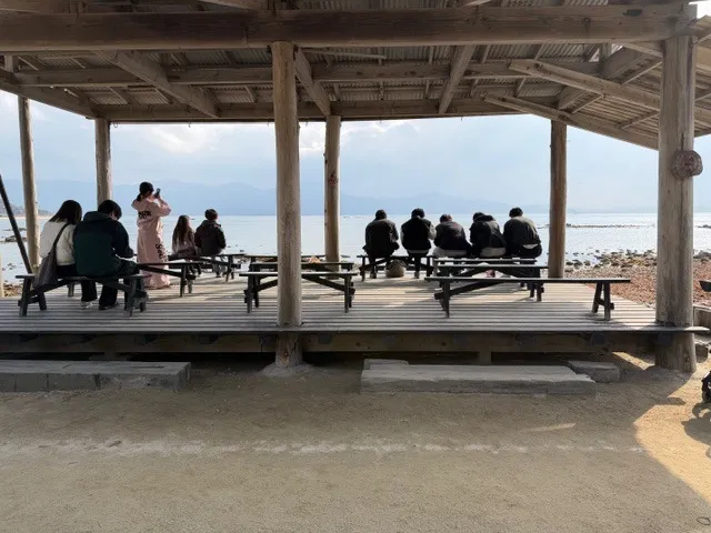 スタッフ3名で牡蠣小屋に行き、其の後、塩工場付近で遊んでいる