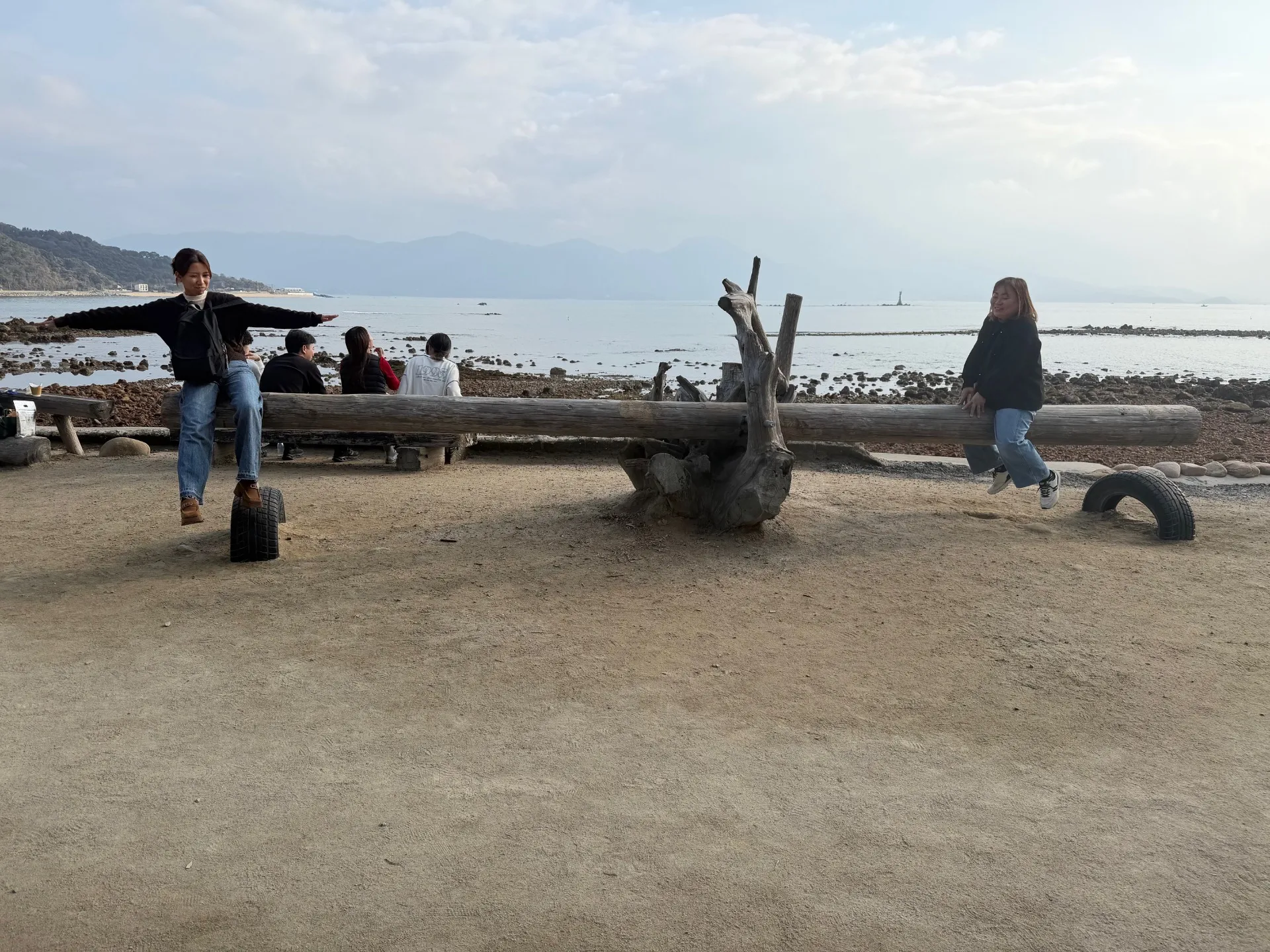 この写真の場面は二人でシーソーに乗っていますね。