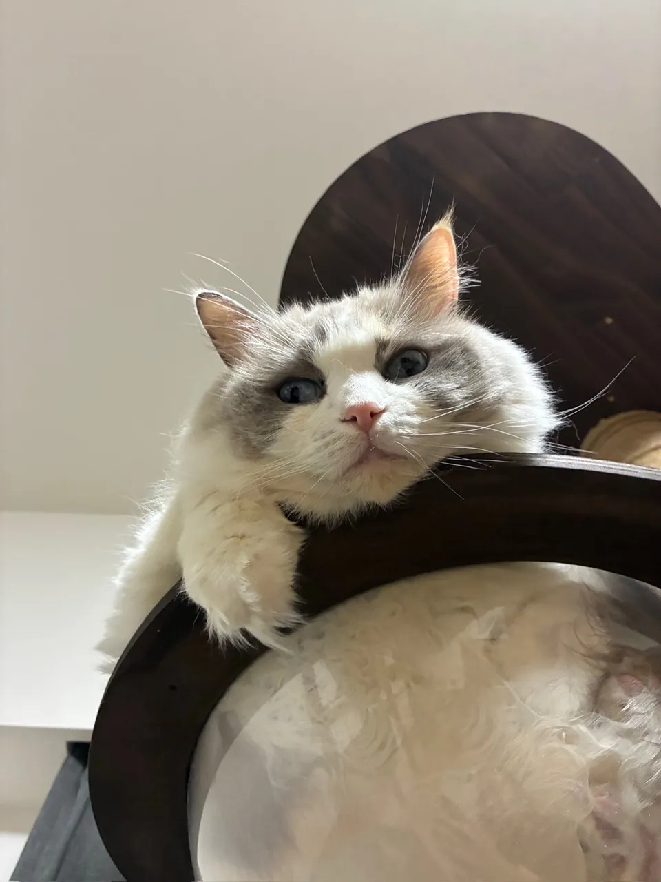 白い方のネコちゃんは、「甘えてきて、朝は私に乗っていることが多い」ということです。