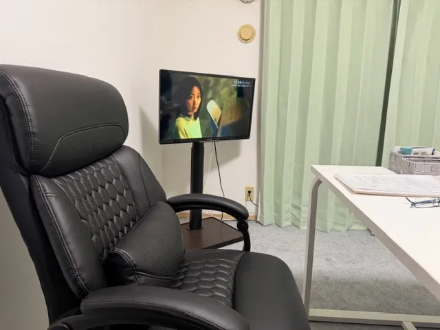 打ち合わせ終了後、深夜の北九州つばめ探偵社事務所における写真を